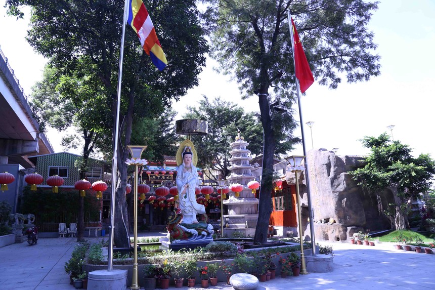 现整座寺院占地面积4500平方米,建筑面积1700平方米,分别有大雄宝殿,念佛堂,斋堂,僧众生活区,天王殿,南海观音殿,笋江神水府等。 一层念佛堂,奉祀趺坐观音,左右侍立善财,龙女,两侧为观音副驾。左龛配祀土地公和桥南余大帝,右龛配祀地藏菩萨和溪南菩萨,两壁塑十八罗汉。二层大雄宝殿,大殿供奉释迦牟尼佛、药师佛、阿弥陀佛、观音菩萨、地藏王菩萨、文殊菩萨、普贤菩萨以及十八罗汉等。